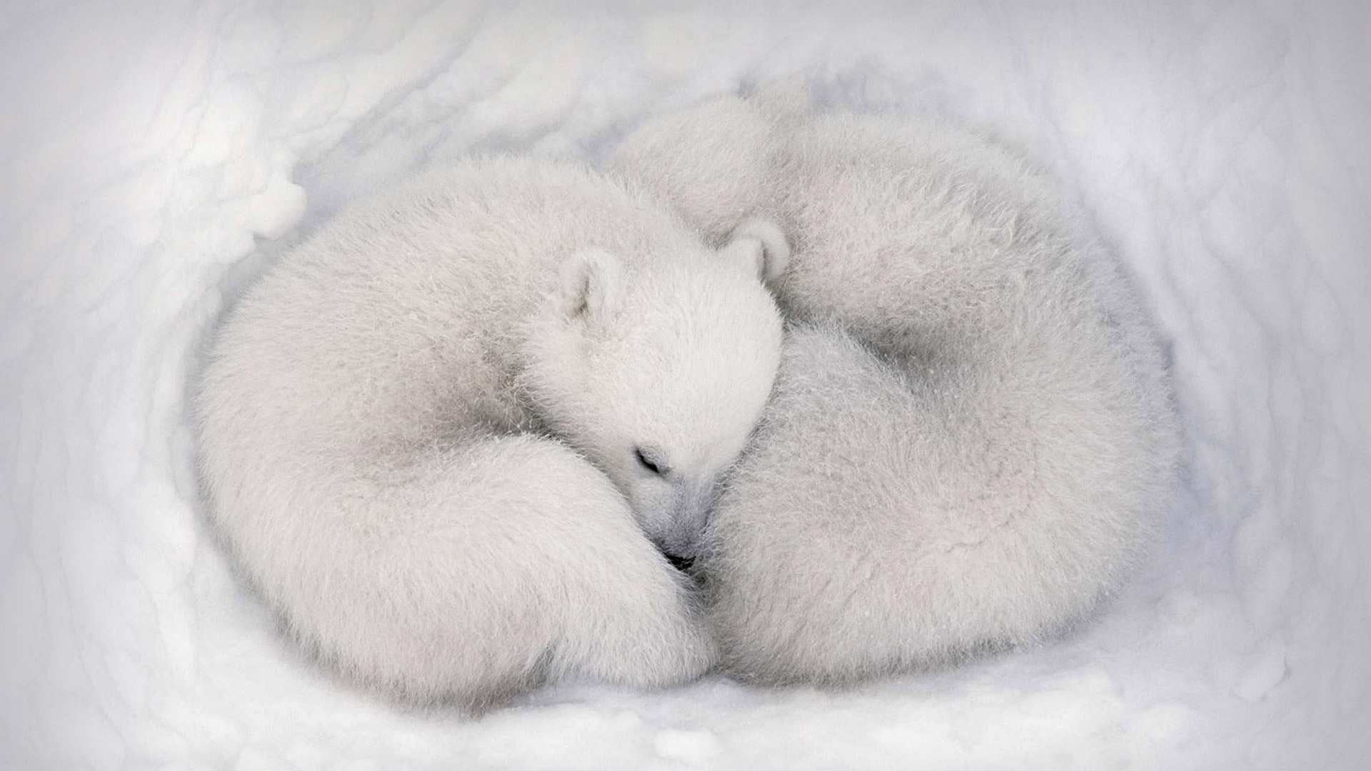 Twin polar bear cubs asleep in a snow den in Wapusk National Park