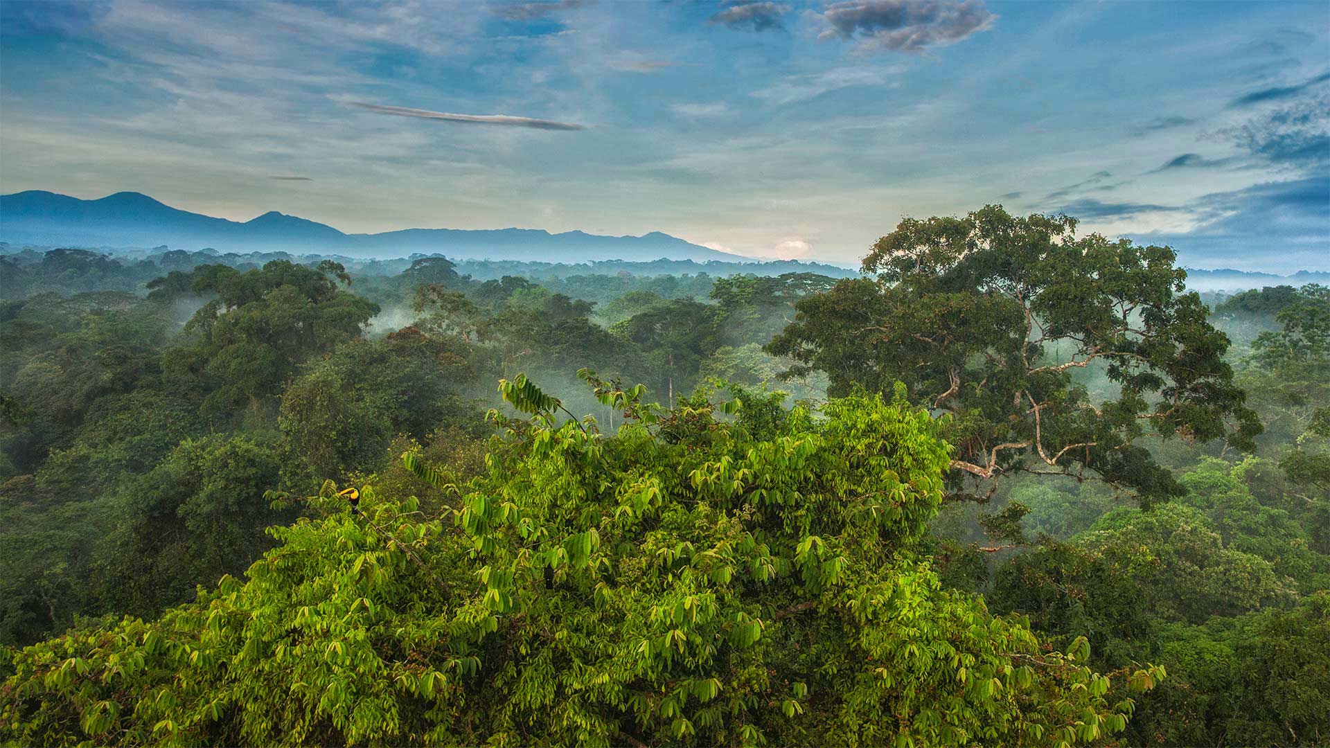 Black-mandibled toucan in the rainforest canopy of La Selva Biological Station in Costa Rica (© Greg Basco/Minden Pictures)