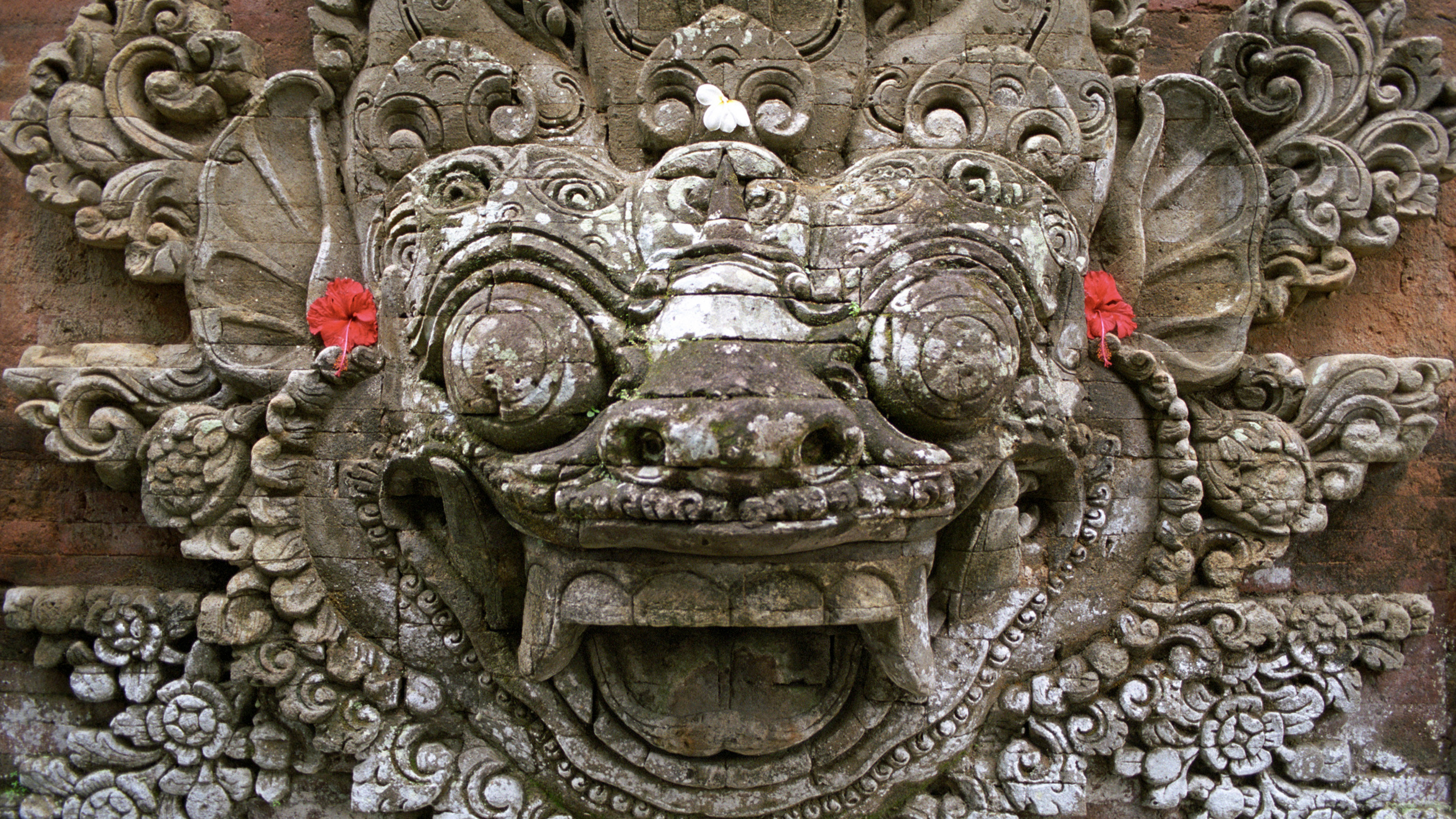 Stone carving at a temple in Ubud, 巴厘岛, 印度尼西亚 (© R. Schönebaum/plainpicture)