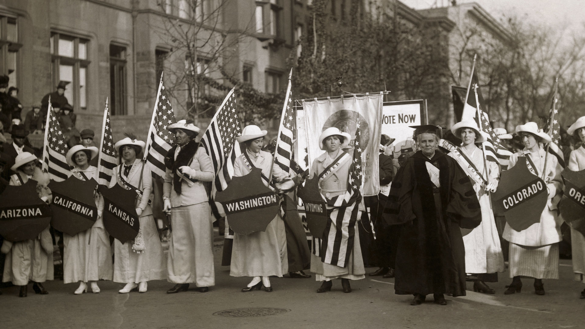 Dr. Anna Howard Shaw leading a suffrage parade in 1910s 纽约市 (© Bettmann/盖蒂图片社)
