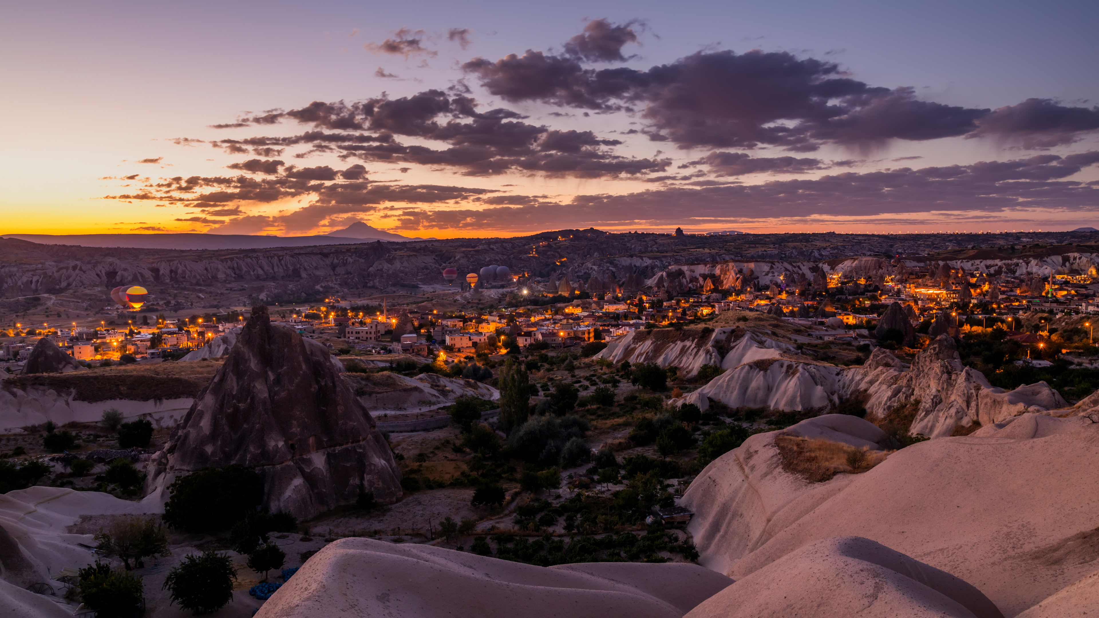 Hot air balloons over Göreme Historical National Park in Cappadocia