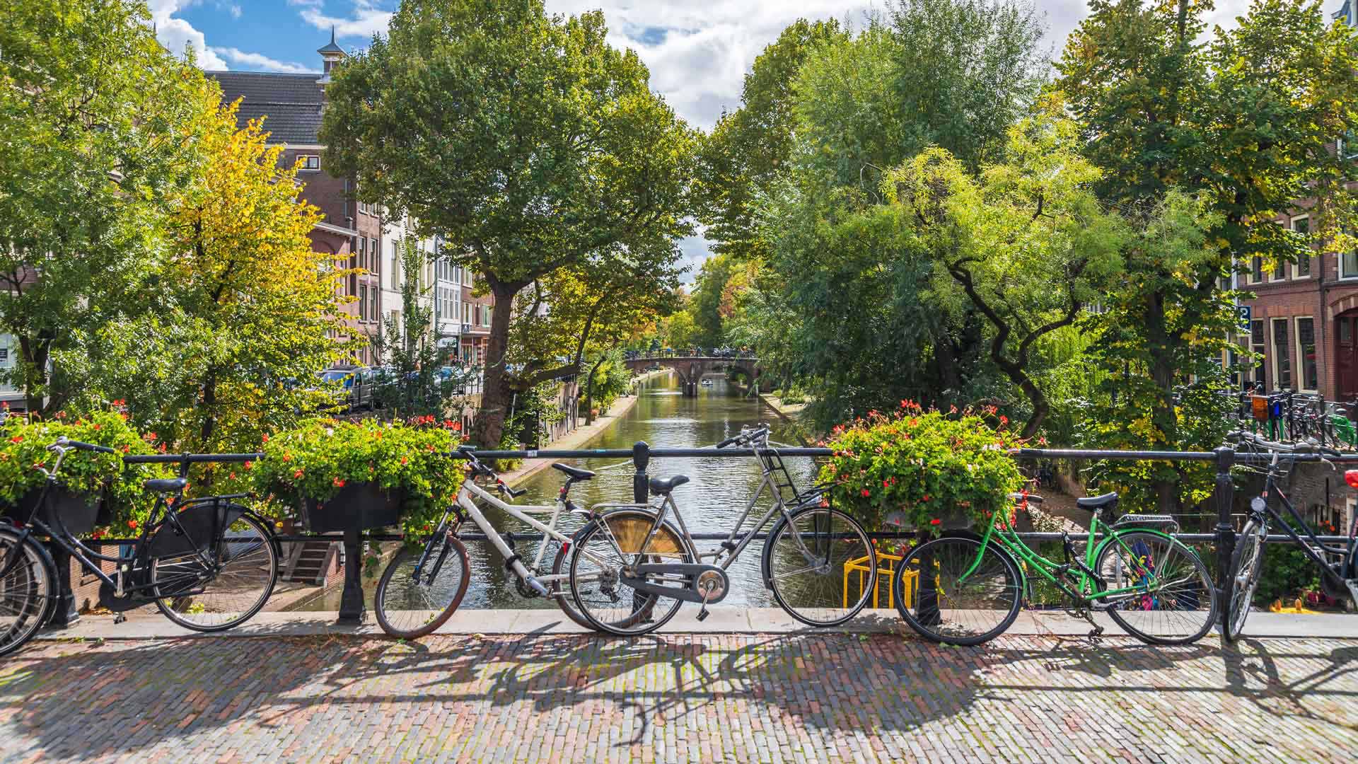 Bicycles on a bridge in Utrecht, 荷兰 (© George Pachantouris/盖蒂图片社)